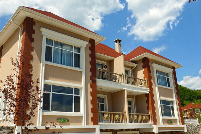 建筑面積約600多平方米。5.2米寬的奢華主臥,將山林、湖水景色盡收眼底。客廳、餐廳連貫相通,左右逢源,全身心感受被自然包圍的愜意。B戶型雙拼別墅(一棟兩戶)共能容納16人入住。